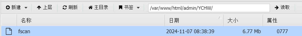 隔了1分钟后fscan成功被上传到YCHW文件夹中,时间为:2024-11-07 08:38:39